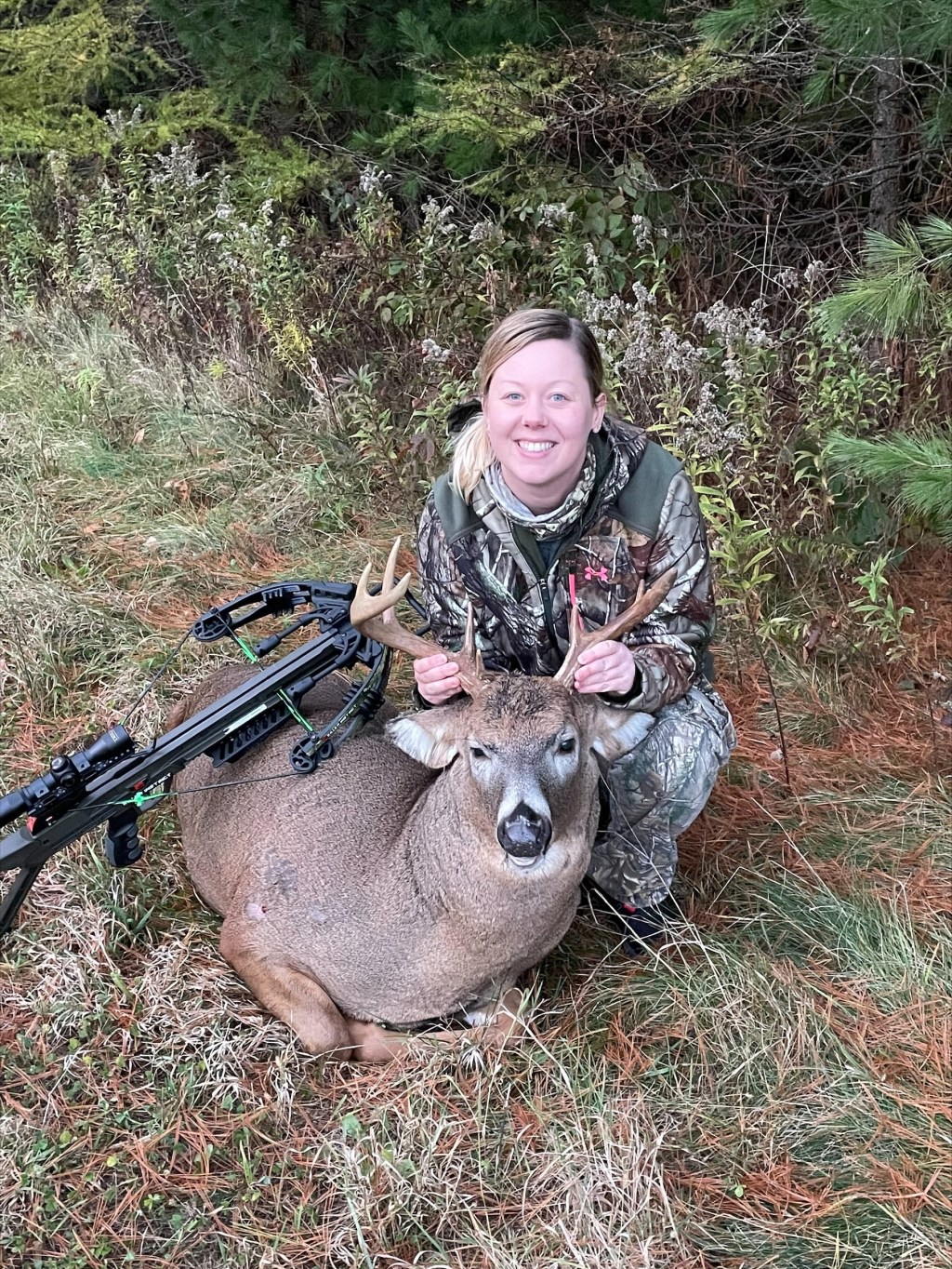 Congrats to Kasi Stankevich – wife of De Pere Virtual Designer Adam Stankevich – on her first archery buck. Kasi dropped this guy on his way to a food plot on Saturday evening during only her third ever sit with a bow. She also reported lots of deer movement, especially during the early hours of the day. If you’re a bow hunter, it sounds like things are picking up. Great shot, Kasi!