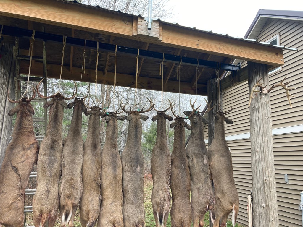 Congrats to TJ Agamaite for taking down this buck on opening morning of gun season. We don’t have a lot of details from TJ on this buck other than he was hunting in the Pembine area. He did, however, send us a few more pictures of what looks like a very successful hunt for his camp. Congrats, TJ!