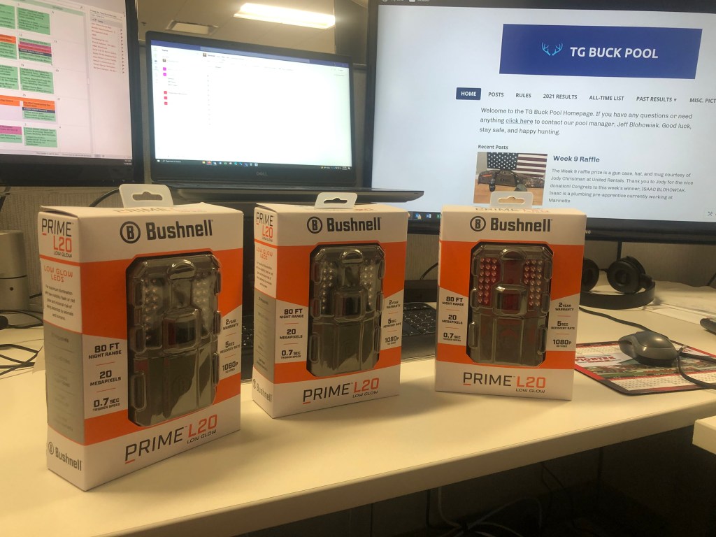 The Week 10 raffle prize is three Bushnell Prime L20 trail cams generously donated by Drew Heeter at Access Inc. Since there are three cameras there will be three winners. Thank you to Drew for the donation!