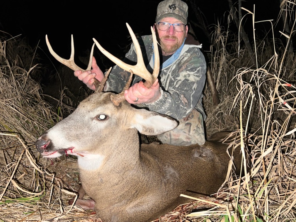 “I started off the day hunting my hawk and catching a squirrel yesterday, so I figured if the squirrels are out the deer will be. I’ve been deer hunting pretty hard and just haven’t had much buck activity by me. I’m hunting near the airport in Outagamie County and it’s been very quiet. Yesterday I decided to sit because the packers have been kind of no worth watching ( although I did pick them to beat Dallas). I got in the stand at 2 and right away they started cutting the corn east of me so I figured the deer would be moving. Sure, enough I saw a doe. Then a 6-point buck. 30 mins later I saw this 8 but he was at 50 yds in the grass. Then he bedded down in the grass. An hour later a doe and 2 – 4 pt bucks came by. They went through and the 8 got up walked away and 15 mins later he came back walking the same trail the doe was on. I said if you come on this trail at 20 yds. Your dead! He did. Shot him at 20 through both lungs, he went 30 yds and pitched in the grass 10 feet from where he originally was bedded. 8 point 16inch spread. Got him out of the woods just in time to see the packers tie and win in overtime! Great day!”
