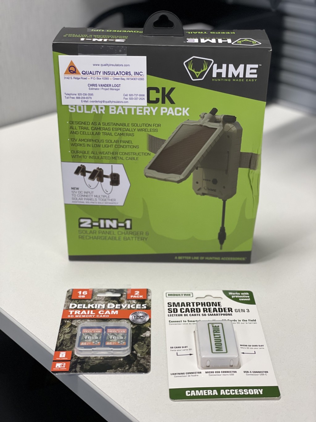 On the TG Buck Pool Podcast we promised an early bonus prize if we surpassed 200 participants in the pool. Well, we shattered that, so it’s time to pay up. If you’re a trail cam person (who in this pool isn’t?) this is an amazing prize. It’s a HME solar battery pack with SD cards and card reader courtesy of Chris Vander Logt at Quality Insulators. Here’s our prize wheel at work: