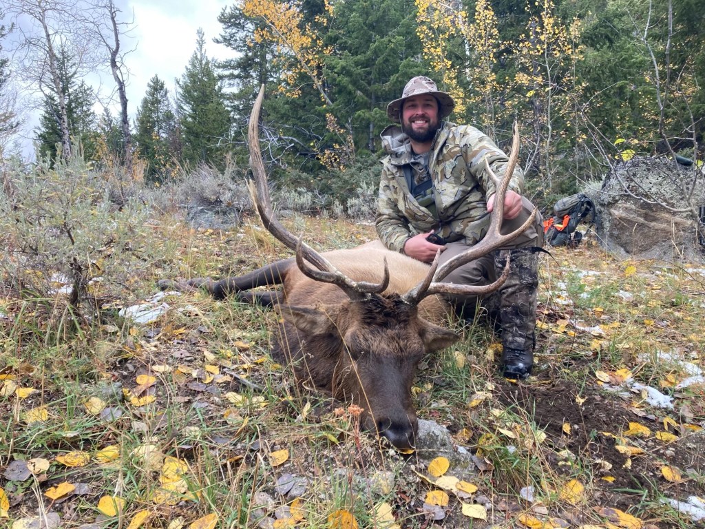 Straight from the mouth of Jason. So I left Arizona on Thursday after work and drove straight through to Wyoming so that we could be in the mountains by Friday night to scout before we get into camp. We hunted all day Saturday with the bows. Sunday was the opener for gun we spent the morning glassing. Found a bull moose at 400 yards very cool. The clouds rolled in and we got rained and snowed on very heavy which made glassing very difficult nearly impossible. We moved to a different area set up camp and started glassing and found 2 bulls on the mountain side about 3 miles away so we started to move in on them right away in the morning. we made it about half way to where we thought we needed to be and could hear the bulls bugling so we set up and started to talk to them. We definitely we talking there language because that started a screaming match for about a half hour. The bull was closing the distance between us but was not yet committed he was in the heavy timber. I most have said the wrong thing in the call because he lost interest. We continued on with our hike to him to a bench of the mountain where we wanted to get to which had a ton of elk sign. Just like that the bull let out a bugle on the next bench above us I climbed on top of a rock for better visibility and I spotted him at 80 yards away making a rub on a spruce tree. I had to take the shot with his mind on ripping up the tree. I squeezed a round off and dumped him in his tracks. Great story and memories bud, congrats again on this great bull.