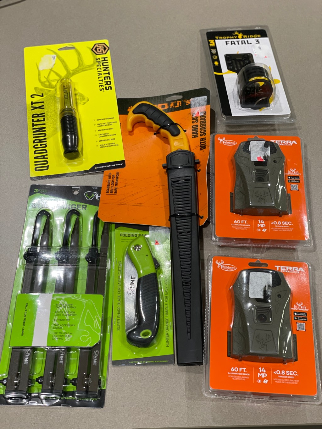 As we’ve said lately we’re a bit behind on the website, so do me a favor and pretend this went up a week ago, because the Week 5 Raffle post for today is also going up in a few minutes. Let’s rewind all the way back to Friday, October 13, 2023. Our prize this week is an awesome deer hunting package consisting of two trail cams, a hand saw, a folding saw, bow sight, pack of bow hangers, and a grunt call courtesy of Jeremy Kuemmel from Samuel. Let’s go to the video: