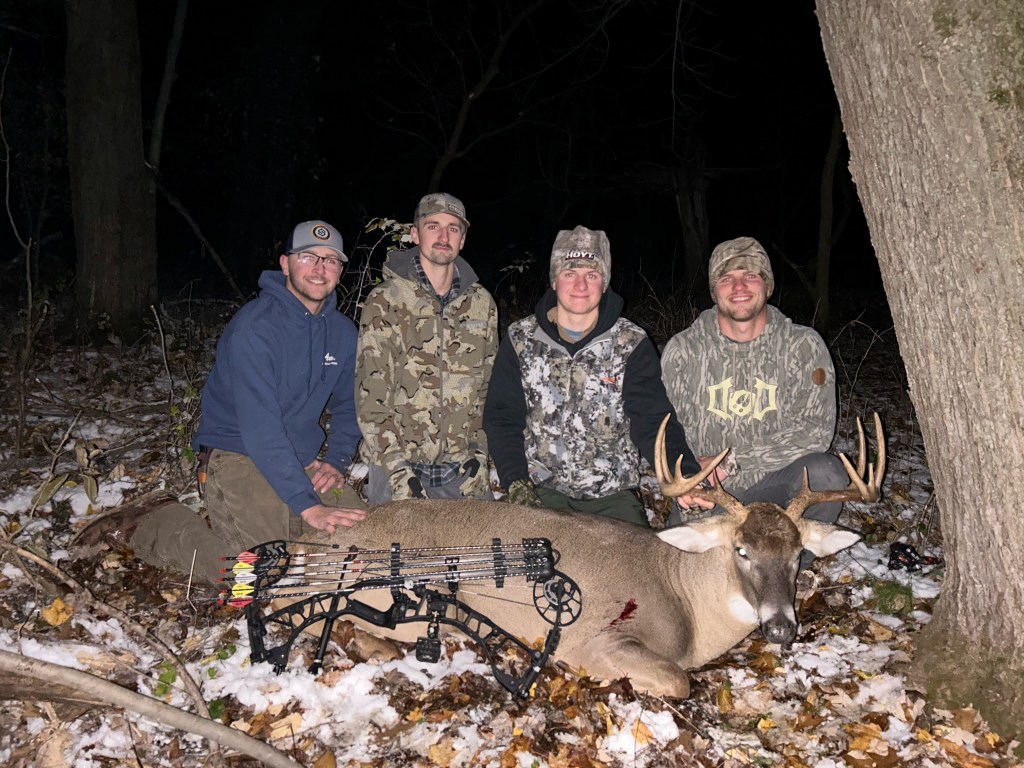 “I hung my stand around 9:30 in the morning and by 11 I saw my first cruising buck. After that little buck went through the movement didn’t stop. Ended up seeing 3 more little bucks and a group of does. Around 5:45 I heard a deer moving through the corn I was sitting near. He eventually worked his way to the edge of the woods and gave me a 20 yard shot. He ended up dying in the draw 60 yards from where I shot him.”