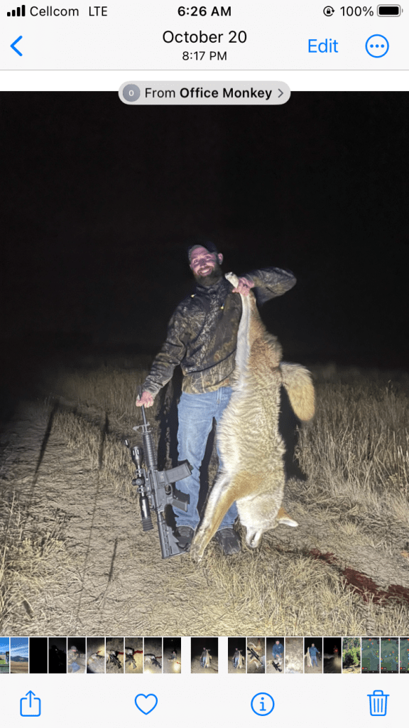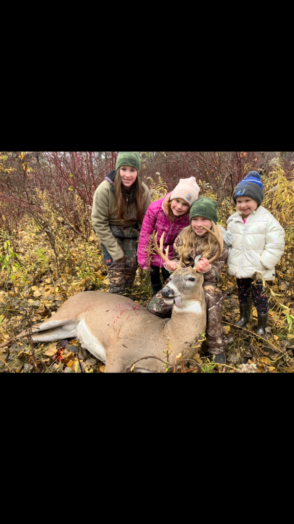 “I’m going to try to keep this short and sweet. I had a successful Montana hunting trip bagging a 5×5 bull the second day of hunting and then shot a 5×5 muley on Wednesday. We also had some luck calling coyotes at night. Every night we got back to the hotel, I’d check my cell cam pics. Wouldn’t you know it that almost every day, I had a 10 pt at home coming in during daylight. It made me sick to my gut as I had two kids waiting to tag him. I got home Saturday morning. I took two of my daughters out with the crossbows and in 45 minutes, Lexi put him down!”