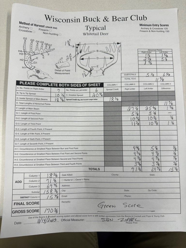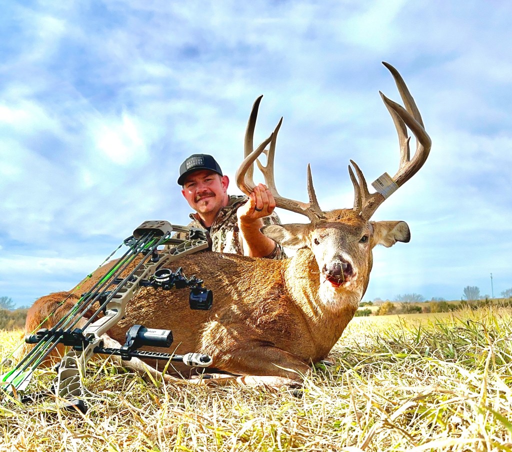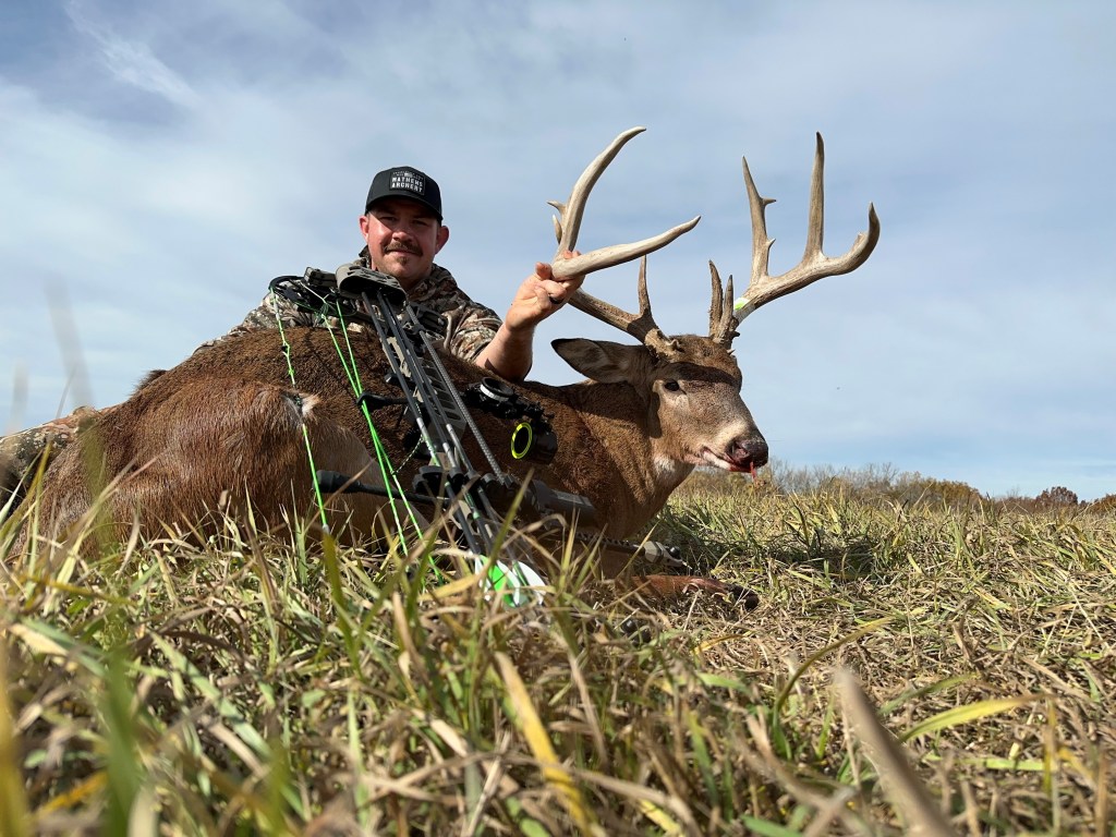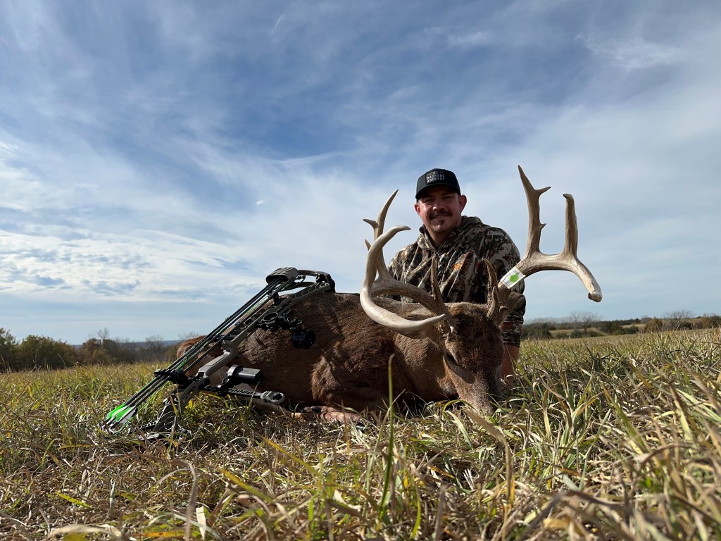 Congrats to Casey Liegeois on tagging this giant Iowa buck this morning on a lease he has been hunting for a couple years. I can’t wait to see what this guy will score! I spoke with Casey after he calmed his nerves down and got the buck out of the field and loaded in his truck I will keep this short as I’m sure Casey will tell the story on this weeks podcast. Here is my best description of what he told me: He said that he started off having a slow afternoon and the next morning on a spot he thought would be a good one but after a couple hours of sitting with nothing happening, he moved to a different place on the property after the morning sit. It didn’t take long to know that he made the right choice because after a few buck grunts from his grunt tube, he had some smaller bucks answering him back. One came running to him which he knew was a good sign. After things calmed down, he heard some deep grunting coming from across the ravine. He couldn’t see anything so he decided to let out some grunts on his grunt tube, after a minute of not seeing anything he gave out one loud snort wheeze. After another minute he saw a buck moving to his left through some thick brush. He brought up his bino’s and noticed that it was a big buck he had on camera a few weeks prior. He gave out one more snort wheeze. After that the buck walked a string right to him. Casey knew it was time to get the bow out and ready for the shot of his life. The buck proceeded to walk thru the brush towards the stand. The buck came within 5 yards of the tree and this is when Casey drilled him and put on a perfect shot. He said it all happened so quick and that the buck fever kicked in so fast afterwards that he actually felt nauseous. LMFAO He had to collect himself before climbing down the tree which was probably a good idea. I can only imagine what that must’ve felt like! Looks like this years TG Buck Pool is turning into a year that we will remember for long time. Check into this weeks podcast as I’m sure Casey will tell the story himself on how it all went down.