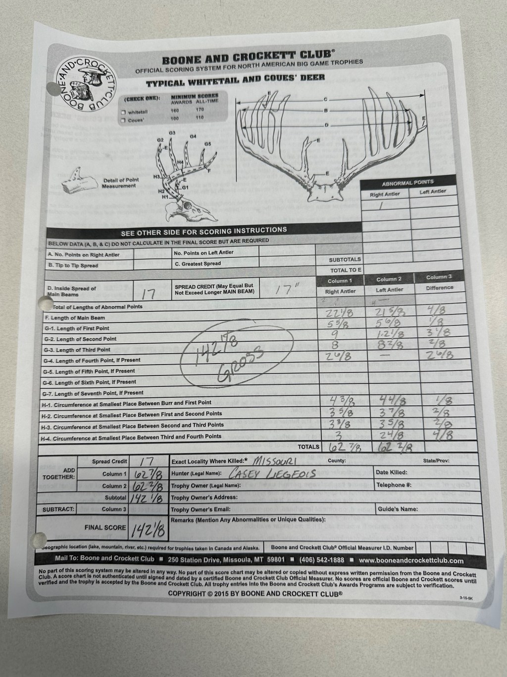 Casey MS Buck Score