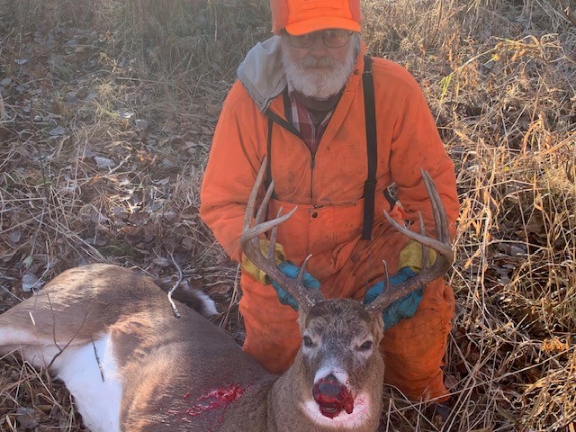 After 63 years of hunting my Dad finally got his big buck. He started hunting when he was 11 years old and now is 75. I don’t know who was more excited that he got it him or me. I’ve been watching him all fall on camera, I glad he was finally able to get it done.