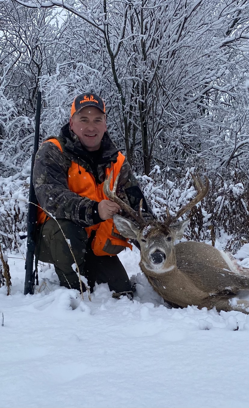 Congrats to Matt Rezba on his muzzle loader buck taken during the muzzle loader season! Matt shot this buck from 300 yards using his 45 caliber CVA Paramount. Great shot Matt! Matt is a steam fitter currently running the Project Cinco project here in Green Bay.
