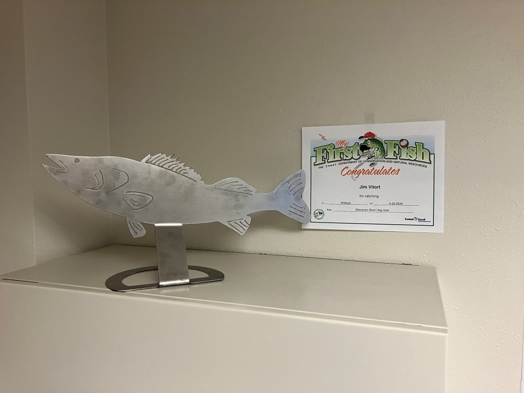 Jim sent in his story of his most recent fishing adventures with co-workers and friends. Jim works out the Wisconsin Rapids location as the Sheet Metal Labor Coordinator/Designer. Thanks for sharing Jim and for showing off your custom trophy! Here is what Jim had to say: