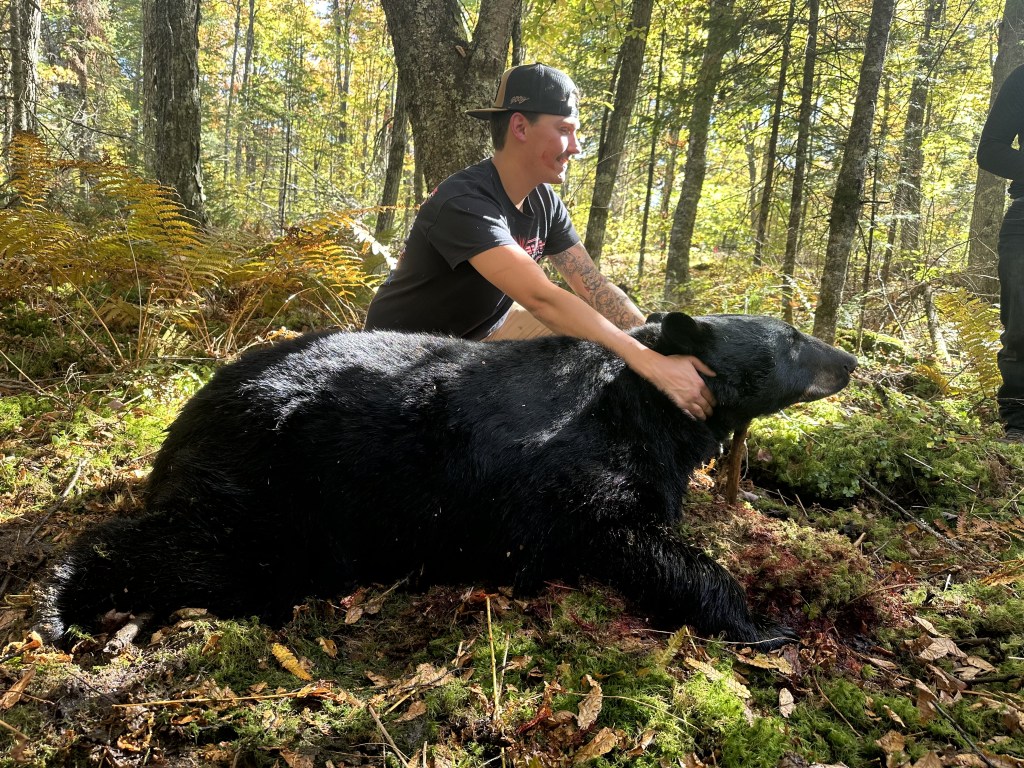 Was an exciting bear season. Overall treed 6 bear, 3 were sows with cubs and 3 were around the 150lb range so I passed on them. We jumped this bear around 9:30 on Saturday and he ran till about 2:00. He refused to tree, and it was getting warm out, so we had to enter the woods before the dogs got beat up. Me and one other guy walked about 350 ft into the woods to catch the bear off guard and boy did we. We got about 20ft away from him and he was trying to swat at the dogs so he diddnt even see us there so I shot him with the rifle right in the throat and he fell onto his back and got right back up and charged me so I pulled out my 44 mag quick and shot him 2 more times and he died at my feet! He weighed in at 312lbs dressed. With a hunt like that I was not worried about the weight, that was one hell of an experience!