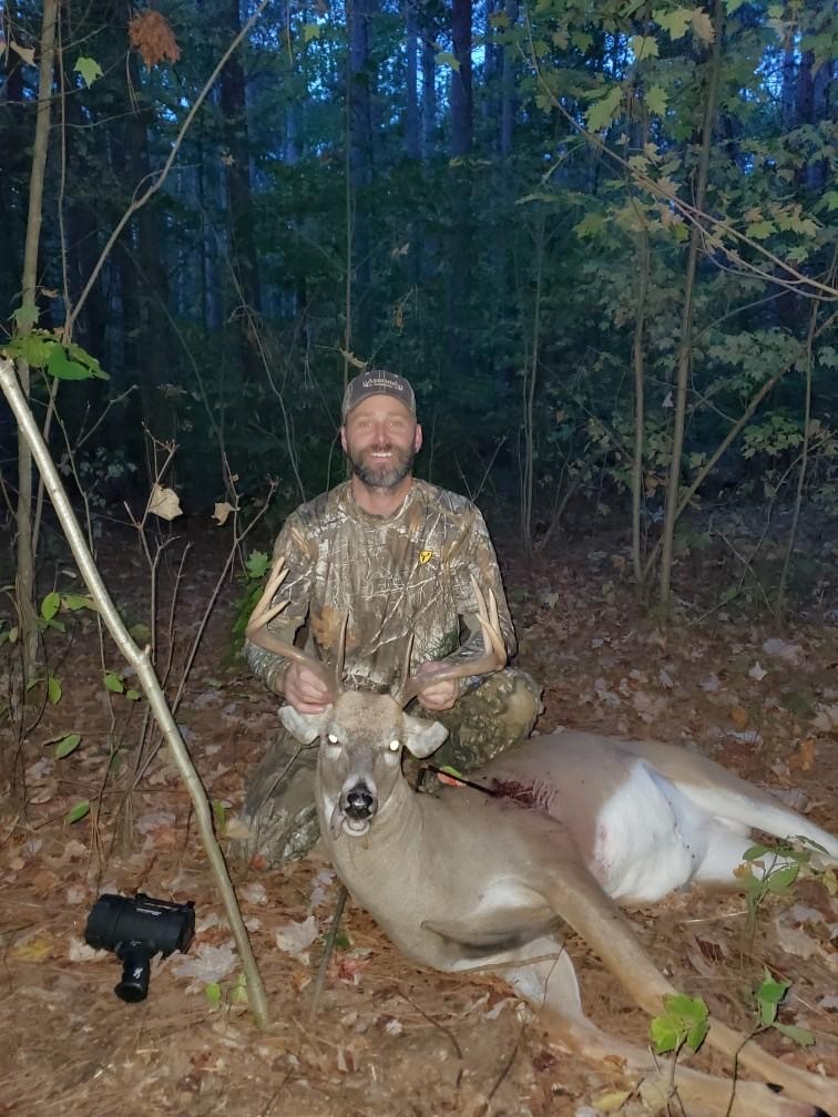 Jason Waligursky and I headed out to hunt couple spots on public Land. I got to my spot about 4:30 pm. Carried in my pack chair and bow. I sat on the ground in front of my tree, set up, and hit the grunt call, Nothing. 20 mins after that doe bleat nothing. At 5:45 pm I decided I was going to hit the black rack easy and grunt a few low & little bit longer grunts, after that I seen him coming in 2 mins later right to me and he stopped 20 Yards away. I was pumped, it was my biggest deer, he looked at me twice, but the wind was perfect. After the second time I knew I had to shoot, or I might not get a chance. After I shot, I went and got Jason at 6:03 pm(Primetime), he helped me track him down. He only made it about 75 Yards away. The rest is history. Big Thanks to Jason for all his help.