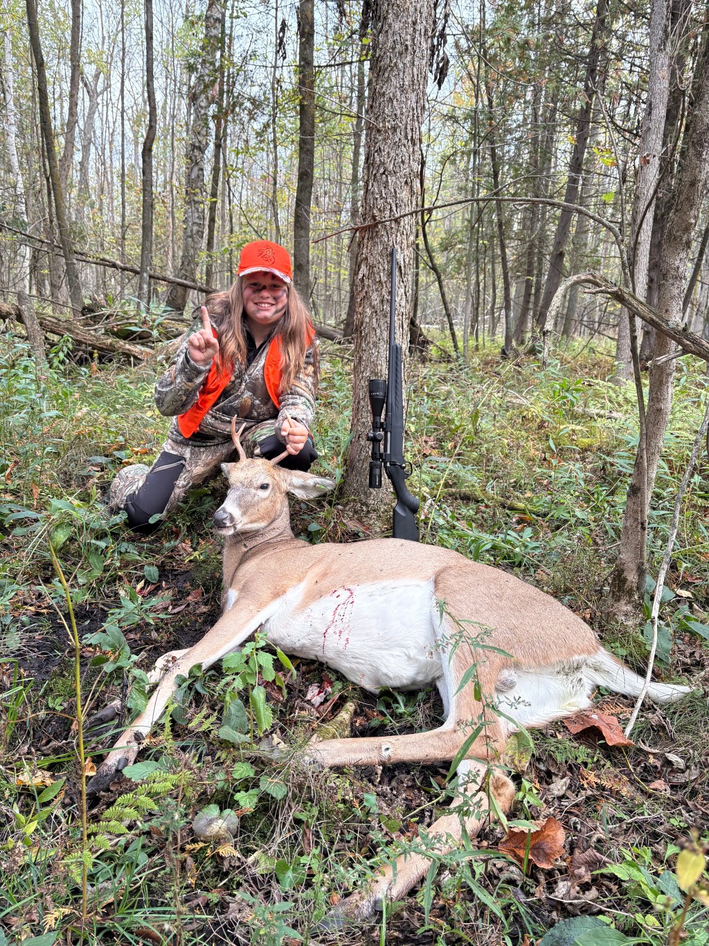 “My daughter set out for her first youth hunt this weekend on Saturday morning. An hour into it, after her first cup of hot chocolate and putting on her war paint, she spotted a deer. Shortly after she noticed it was a buck! After she got control of her nerves as he walked in and some re adjustments, she was successful on harvesting her very first deer and the perfect 3 pointer at that!”