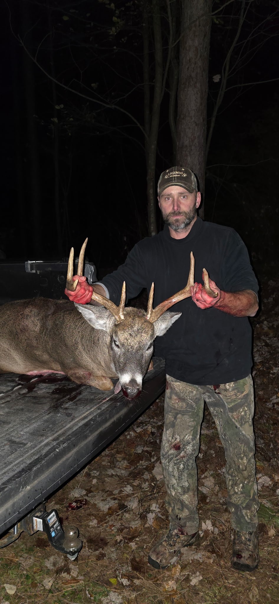 “I got an opportunity at this guy last Friday evening. Thursday night he was chasing hard and he never gave me a shot. Friday night I had a doe coming through. I looked to my left and seen antlers. I knew it was at least an 8pt, so I was shooting if I had the chance. Once I got a good look at him, I realized it was the big 8 I had on camera and seen the night before. I was amped hoping for a chance. He kicked the doe out I figured it was over, and he wasn’t going to give me a shot. The doe ended up turning around working her way back to me. Forcing him to step across my shooting lane. It was his last step.”