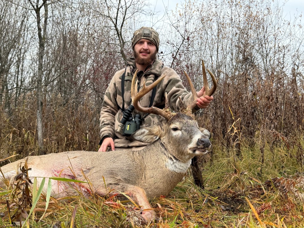 “Shot it November 7th in Shawano county, seen it working a line fence. Grunting was getting his attention but a snort wheeze brought him in!”