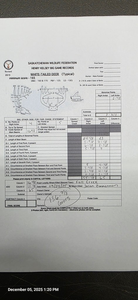 “Shot Sep. 28th, Eau Claire County. Gross score of 136 7/8”