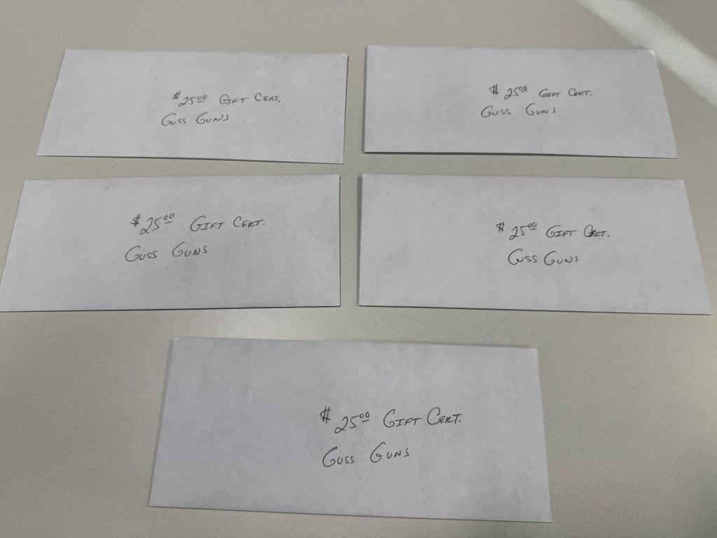 For our final prize today week have FIVE (5) $25 gift cards to Gus’s Guns donated by our friends at Gus’s Guns. Five gift cards = five winners. They are: