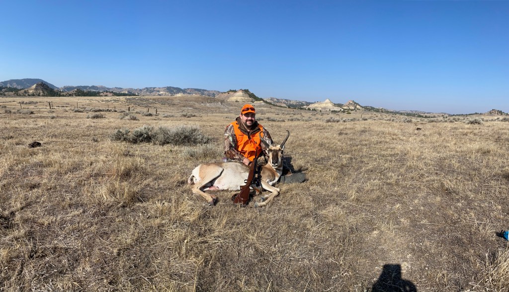 Here is my 3×3 Mule deer from Nebraska, if you look close you can see the doe he was with in the background.