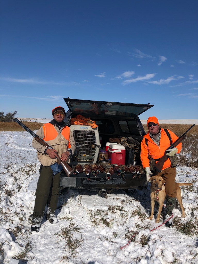 Greg Blazer took this pic of his brother Jeff, buddy Carl, and his new pup JR. They got their limit on pheasant in South Dakota!