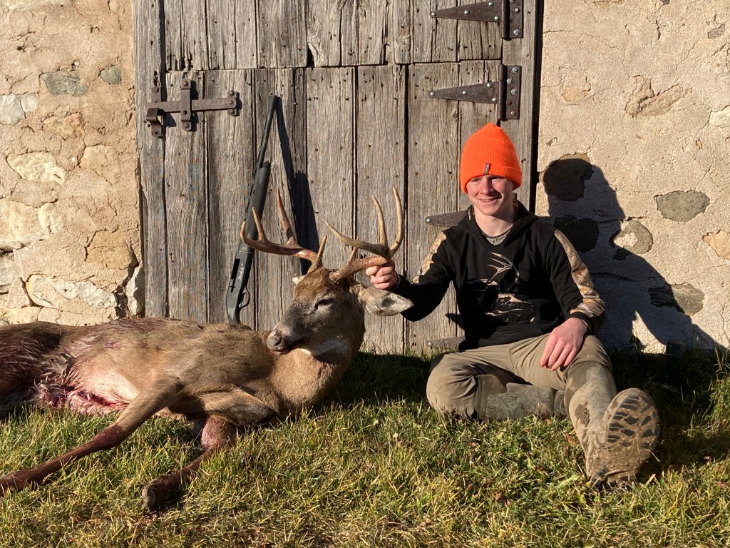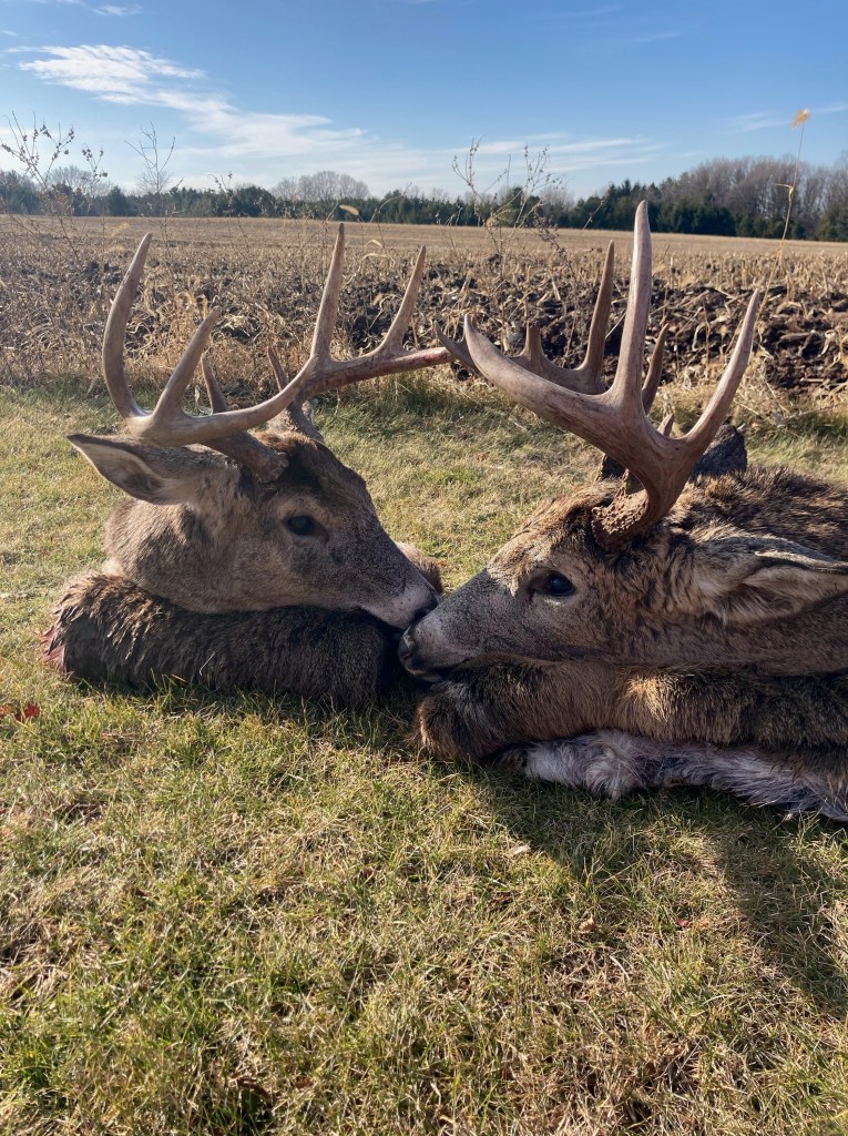 Caleb Delebreau with his nice buck taken near Slovan, WI during gun season. Caleb is the son of Joe Delebreau of T/G. Cool pic of their bucks together!