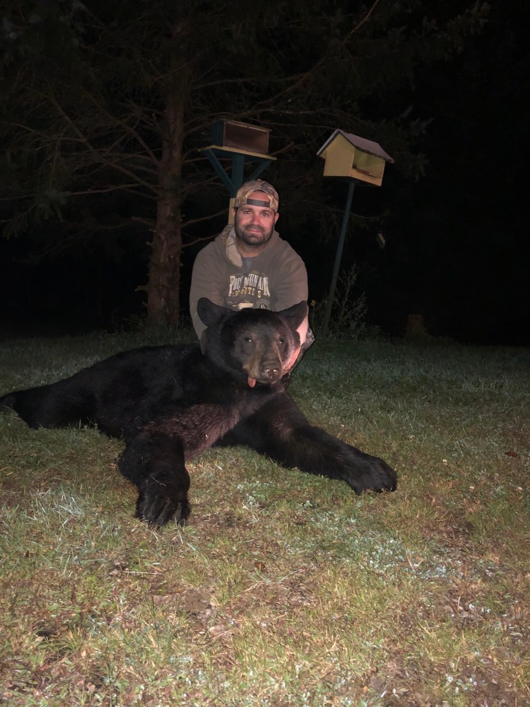 Greg Sikorski and his 275 lbs black bear taken near the Mountain, WI area. Greg is a Project Manager out of the De Pere Office.